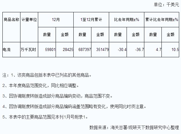 2012年12月我國(guó)當(dāng)月進(jìn)口電流數(shù)量統(tǒng)計(jì)