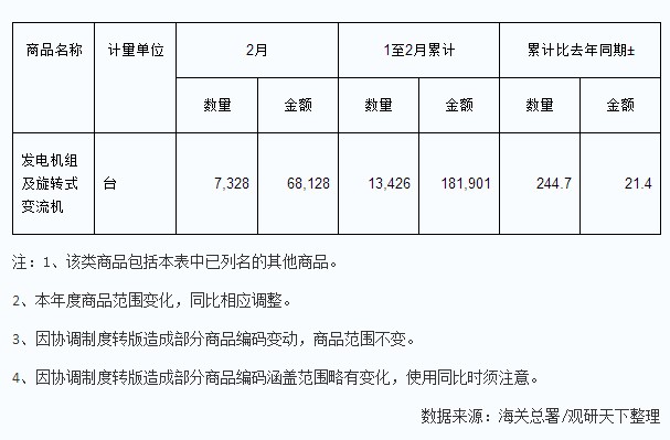 中國(guó)進(jìn)口發(fā)電機(jī)組海關(guān)統(tǒng)計(jì)數(shù)據(jù)(2013年2月)