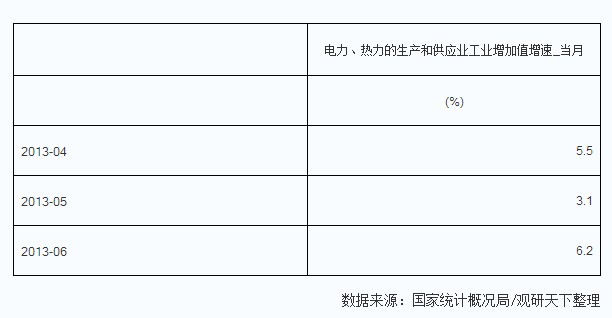 2013年4-6月中國(guó)電力、熱力的生產(chǎn)和供應(yīng)業(yè)工業(yè)增加值增速情況(當(dāng)月)