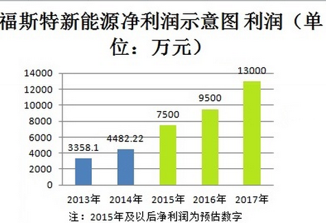 在國家不斷加大力度發(fā)展新能源的背景下,2013年、2014年和2015年1-4月,福斯特新能源分別實(shí)現(xiàn)凈利潤3358.1萬元、4482.22萬元和1127.32萬元,保持了較高的增長態(tài)勢。此外,在這次收購中,福斯特方面保證2015年至2017年的凈利潤將分別不低于7500萬元、9500萬元、1.3億元,繼續(xù)保持30%-40%的高速增長,并簽訂了業(yè)績不達(dá)標(biāo)的《利潤補(bǔ)償協(xié)議》。
