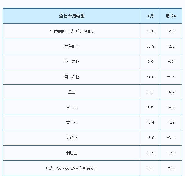 2014年1月黑龍江省社會(huì)用電量統(tǒng)計(jì)情況