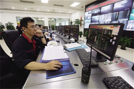 在中央控制室,專人負(fù)責(zé)監(jiān)控焚燒爐等設(shè)備的實(shí)時(shí)運(yùn)行狀況。