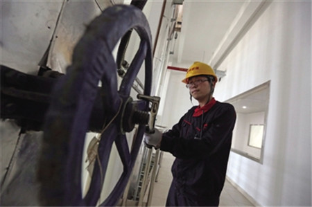 鍋爐工作人員至少每兩小時(shí)就要巡視一圈,室內(nèi)溫度高達(dá)攝氏60多度,制服很快就被汗水浸透。
