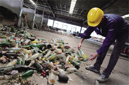 由于公眾的垃圾分類意識(shí)仍待提高,垃圾焚燒前,廠內(nèi)的分揀系統(tǒng)每天需要挑揀出大量可循環(huán)再利用的玻璃瓶、塑料瓶。