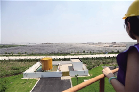 據(jù)統(tǒng)計(jì),目前中國城市生活垃圾的70%以填埋為主。圖為參觀者從高處可以俯瞰到的垃圾填埋場。