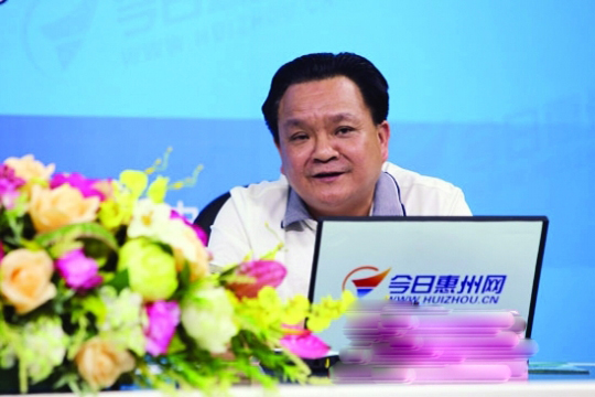 市環(huán)衛(wèi)局局長楊榮與網(wǎng)友互動。今日惠州網(wǎng)圖