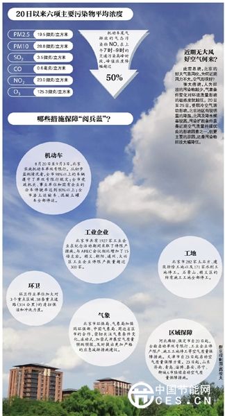 紀(jì)念抗戰(zhàn)勝利70周年大閱兵在即,北京的空氣質(zhì)量如何備受關(guān)注。北京市環(huán)保監(jiān)測中心數(shù)據(jù)顯示,本月20日實(shí)施單雙號(hào)限行等減排措施后,連續(xù)5天北京PM2.5平均濃度為19.5微克/立方米,創(chuàng)下有PM2.5觀測記錄以來持續(xù)5天的最低值。為保障“閱兵藍(lán)”,全市共有1927家工業(yè)企業(yè)采取了停限產(chǎn)措施,與APEC會(huì)議相比增加了15倍左右。