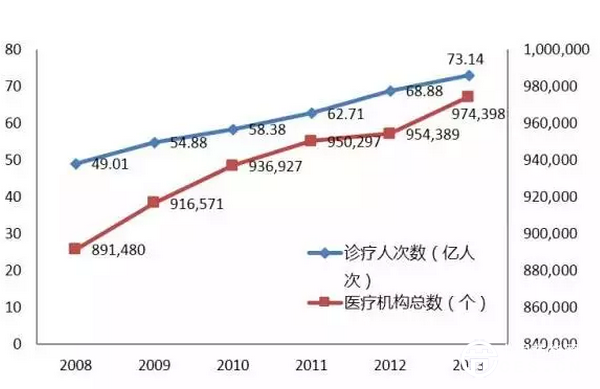 此外,根據(jù)相關(guān)的醫(yī)療衛(wèi)生數(shù)據(jù)可知,2014年全國醫(yī)療衛(wèi)生機構(gòu)總數(shù)達98.5萬個,居民年均到醫(yī)療衛(wèi)生機構(gòu)平均就診次數(shù)超過5次。種種數(shù)據(jù)表明,我國對醫(yī)療衛(wèi)生事業(yè)的改革與發(fā)展支持的力度可見一斑。