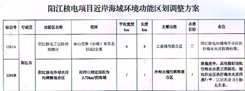 廣東省同意調(diào)整陽江核電項目近岸海域環(huán)境功能區(qū)劃