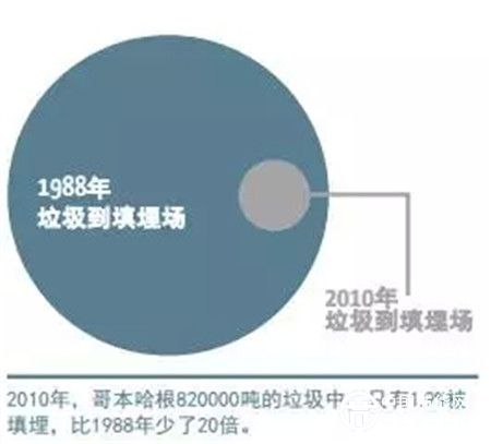 丹麥只有無(wú)法回收利用也無(wú)法焚燒的垃圾,才允許垃圾填埋。粗略統(tǒng)計(jì),2010年哥本哈根只有1.9%的垃圾被填埋處理。以建筑垃圾為例,丹麥1990年92%的建筑垃圾被填埋,今天92%回收,8%填埋。