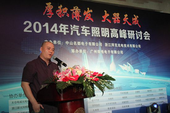 2014年5月19日,在廣州先烈中路85號(hào)浙江大廈5樓浙江廳內(nèi),《2014年度中國汽車照明行業(yè)高峰研討會(huì)》盛大召開,本次研討會(huì)主題為“厚積薄發(fā) 大器天成”,用于闡述當(dāng)下國內(nèi)汽車照明行業(yè)再合適不過。來自中國HID業(yè)界的大佬們齊聚一堂,以HID人的身份責(zé)無旁貸的擔(dān)起HID行業(yè)發(fā)展建言之責(zé)任。