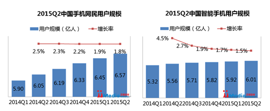 互聯網+社區(qū)意味著線上和線下資源的整合,而在此過程中互聯網及移動互聯網即為其中橋梁。iiMediaResearch(艾媒咨詢)數據顯示,截止2015Q2,中國手機網民用戶規(guī)模達到6.57億人,中國智能手機用戶達6.01億人。