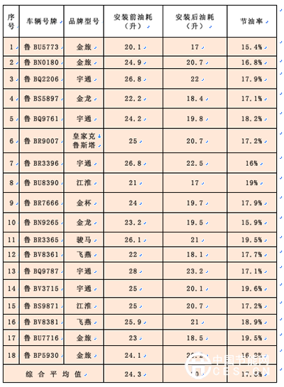 車輛節(jié)油測(cè)試報(bào)告表(數(shù)據(jù)驗(yàn)證了節(jié)油器安裝后油耗平均下降17.6%的功效)