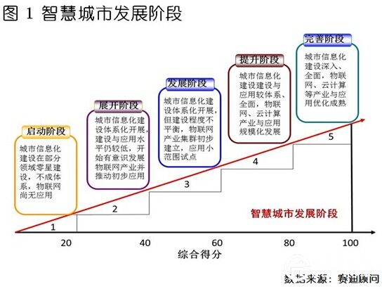 核心提示:綜合考慮智慧城市建設(shè)特點(diǎn)與建設(shè)程度,物聯(lián)網(wǎng)、云計(jì)算、移動(dòng)互聯(lián)等新興產(chǎn)業(yè)發(fā)展與應(yīng)用程度等,智慧城市建設(shè)可劃分為五個(gè)階段,即啟動(dòng)階段、展