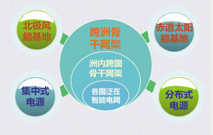 全球能源互聯(lián)網(wǎng)是一個(gè)由跨洲電網(wǎng)、跨國電網(wǎng)、國家泛在智能電網(wǎng)組成,各層級電網(wǎng)協(xié)調(diào)發(fā)展的有機(jī)整體。在全球范圍看,全球能源互聯(lián)網(wǎng)將依托先進(jìn)的特高壓輸電和智能電網(wǎng)技術(shù),形成連接北極地區(qū)風(fēng)電、赤道地區(qū)太陽能發(fā)電和各洲大型可再生能源基地與主要負(fù)荷中心的總體布局。