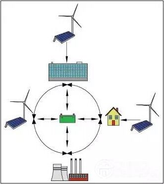 ■該簡化的智能電網(wǎng)圖給出了能源存儲是如何允許可再生能源納入到電網(wǎng)中,成為智能電網(wǎng)的重要部分的。在每個連接點,在不同區(qū)域的分配、傳輸和生產(chǎn)系統(tǒng),都有機會實現(xiàn)由智能電網(wǎng)技術(shù)提供的嵌入式智能、監(jiān)視、控制、信息流的機會。