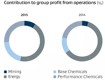 功能化學品業(yè)務仍然表現(xiàn)穩(wěn)定,運營利潤相比上年增長7%至12714百萬蘭特。良好的財務表現(xiàn)很大程度上是由于產量增加、良好的需求、堅挺的毛利率、以及走弱的蘭特/美元匯率所帶來的銷售量增加了2%的結果,盡管油價降低33%對沙索的乙烯價值鏈有負面影響,沙索美國業(yè)務仍然實現(xiàn)了令人滿意的利潤,并且歐洲業(yè)務產量增加了3%。