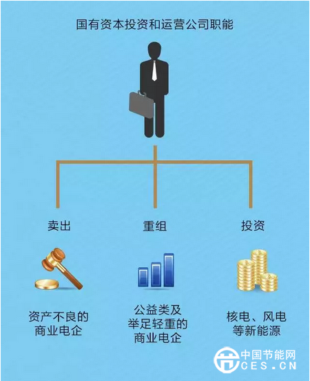 建立國(guó)有資本投資和運(yùn)營(yíng)公司后,那些資產(chǎn)不良的商業(yè)電企,將會(huì)被賣掉;公益類以及部分關(guān)系國(guó)家安全、國(guó)民經(jīng)濟(jì)命脈的商業(yè)類電力企業(yè),將會(huì)重組整合;而核電、風(fēng)電等新能源產(chǎn)業(yè),將得到創(chuàng)新投資。