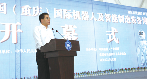 在2015中國(重慶)國際機(jī)器人及智能制造裝備博覽會開幕式上講話。