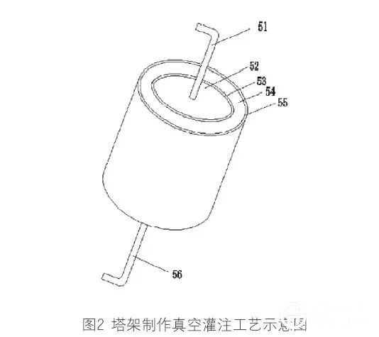圖2為塔架制作真空灌注工藝示意圖,其中真空灌注法工藝流程如下:
