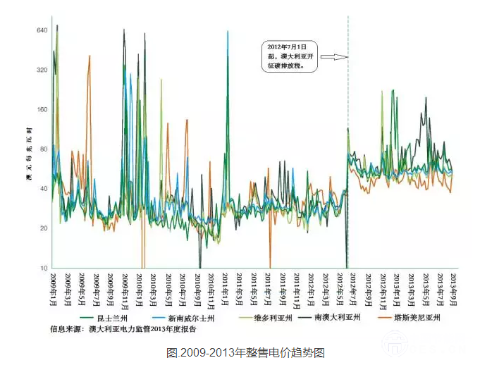 在進(jìn)行市場(chǎng)規(guī)則設(shè)計(jì)時(shí),讓更多的電量合約在日前市場(chǎng)達(dá)成有利于電力系統(tǒng)的調(diào)度和平衡。實(shí)時(shí)市場(chǎng)的功能主要在于價(jià)格發(fā)現(xiàn)和負(fù)荷平衡,給供需雙方提供實(shí)時(shí)的價(jià)格激勵(lì),刺激市場(chǎng)參與者提高負(fù)荷預(yù)測(cè)和需求管理水平。日前市場(chǎng)和實(shí)時(shí)市場(chǎng)相配合是解決這種矛盾的有效做法。這在北美加州電改和德州電改的推進(jìn)過程中表現(xiàn)得很充分。讓人困惑的是,澳洲電改雖然在加州電改挫敗之后才邁出實(shí)質(zhì)性動(dòng)作,但仍然采取了這種偏激進(jìn)的競(jìng)價(jià)制度安排。不過從電改之后的整售電價(jià)趨勢(shì)來看,類似加州的情況雖然也在澳洲有所體現(xiàn),但整體并不足以影響市場(chǎng)秩序。澳洲整售電價(jià)現(xiàn)已成為澳洲能源市場(chǎng)及政策辯論中的一個(gè)關(guān)鍵參量。