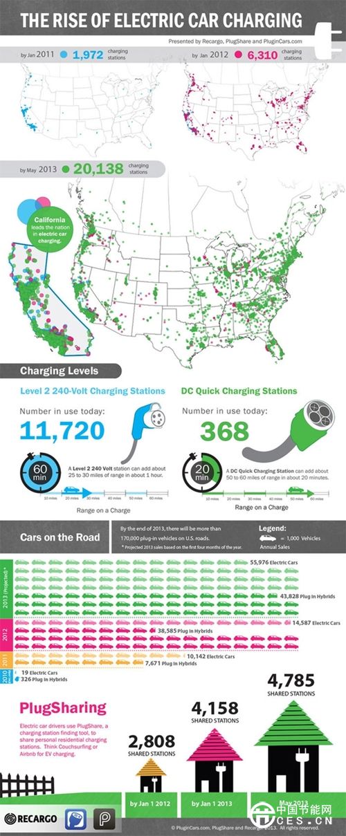 從上圖可見,發(fā)展速度相當(dāng)快,如果僅僅是數(shù)量多,也不足為奇。以ChargPoint為例,它不僅僅是一個(gè)簡(jiǎn)單的充電網(wǎng)絡(luò),它還可以向電動(dòng)車車主、經(jīng)銷商及制造商提供大量云服務(wù),比如電動(dòng)汽車使用車可以通過(guò)手機(jī)下載充電服務(wù)公司的App,來(lái)尋找就近的空閑充電樁,并可直接導(dǎo)航至充電樁所在地。