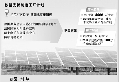 據(jù)沃森介紹,這個(gè)項(xiàng)目計(jì)劃分兩個(gè)階段推進(jìn):第一階段約投資5000萬(wàn)歐元,在2015年建設(shè)產(chǎn)能9萬(wàn)千瓦的工業(yè)示范生產(chǎn)線;第二階段約需投資5億歐元,到2017年建設(shè)產(chǎn)能100萬(wàn)千瓦的制造工廠。目前第一階段計(jì)劃正在緊鑼密鼓實(shí)施中,第二階段還處于融資階段。