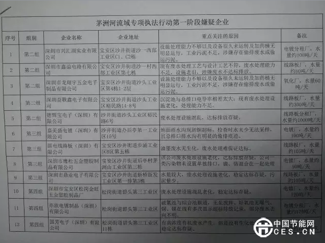 附上本次深圳茅洲河地區(qū)治理被列入的第一批名單的部分企業(yè),可能今年年底全部會停下來。以后深圳市場的專門搞電鍍加工的應該就都慢慢退出來了: