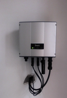 3KW分布式光伏發(fā)電系統(tǒng)采用1臺(tái)英威騰MG3KTL-2M光伏逆變器,組件6塊1串,2串分別接入MG3KTL-2M中的兩路MPPT下,輸出交流配電箱(內(nèi)含繼電保護(hù)裝置、交流防雷模塊等)后接入家中原有配電箱。