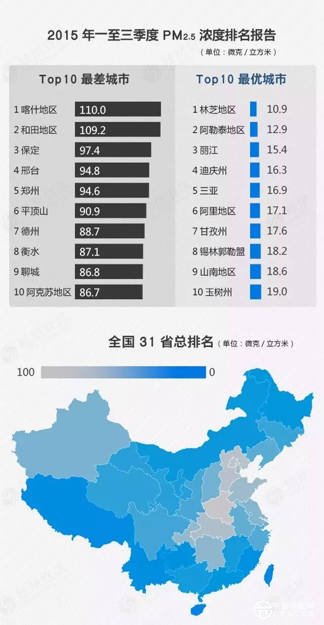 2015年10月15日,綠色和平通過分析中國367座城市公開的實(shí)時(shí)監(jiān)測(cè)數(shù)據(jù),正式發(fā)布《2015年一至三季度中國367座城市PM2.5濃度排名》。
