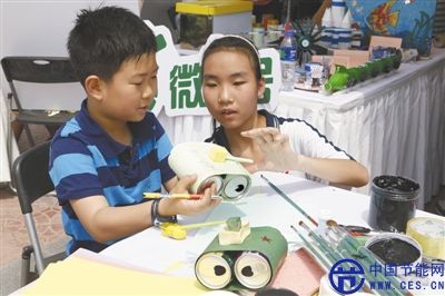 小朋友用廢舊易拉罐制作坦克。為迎接6月5日環(huán)境日,昨日,“環(huán)保嘉年華”在朝陽公園啟動,活動分自然教育體驗(yàn)區(qū)、動物朋友互動區(qū)、科普實(shí)驗(yàn)動手區(qū)、綠色創(chuàng)意交流區(qū)、環(huán)境影像展示區(qū)、環(huán)保游戲區(qū)等主題區(qū)。通過互動參與方式,讓孩子們有機(jī)會親近、感受和愛護(hù)自然,培養(yǎng)他們保護(hù)環(huán)境、綠色生活的意識?;顒映掷m(xù)至明天。新京報(bào)記者 高瑋 鄧琦 攝影報(bào)道