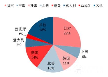 下圖是1995年的全球工業(yè)機器人的分布圖,從圖中可見日本是全球采用工業(yè)機器人數(shù)量最多的國家,全球有超過60%的工業(yè)機器人在日本,其次是德國,再次是北美,估計北美的大部分機器人都在美國,而中國為0,可以說當(dāng)時中國確實是靠出賣自己的廉價勞動力來獲得外匯的。