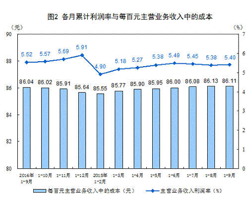 1-9月份,規(guī)模以上工業(yè)企業(yè)實(shí)現(xiàn)主營(yíng)業(yè)務(wù)收入797088.6億元,同比增長(zhǎng)1.2%;發(fā)生主營(yíng)業(yè)務(wù)成本686411.2億元,增長(zhǎng)1.3%。