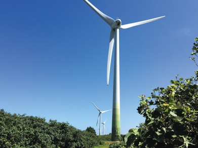 桃園縣觀音鄉(xiāng)位于臺(tái)灣地區(qū)的西北海岸。10月中旬,這里風(fēng)速極好,一些風(fēng)帆愛(ài)好者來(lái)這里沖浪。他們身后,百余座風(fēng)力發(fā)電機(jī)也在享受著來(lái)自太平洋的海風(fēng),直徑達(dá)80米的葉片勻速旋轉(zhuǎn),產(chǎn)生的電源源不斷匯入當(dāng)?shù)仉娋W(wǎng)。
