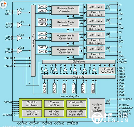 每個(gè)PowerPSoC特性綜合力量的數(shù)組的外圍設(shè)備以及數(shù)控功能。電力設(shè)備包括: