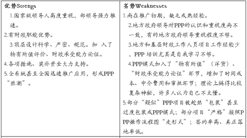(一)對(duì)現(xiàn)行財(cái)政主導(dǎo)PPP模式的SWOT分析