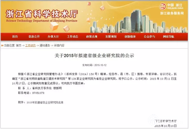 2015年10月,浙江省科學技術廳公布了2015年度省級企業(yè)研究院名單,浙江樂葉光伏科技有限公司榮登榜單。