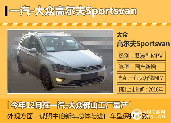 全新一代高爾夫GTI在本月上市,現(xiàn)如今全新高爾夫家族中擁有普通高爾夫7、高爾夫GTI和高爾夫R-line三款國產(chǎn)車型,車型家族化初步形成,而未來該家族還將進一步擴大。網(wǎng)上車市在梳理一汽大眾未來將推出的新車后發(fā)現(xiàn),一汽-大眾還將要陸續(xù)推出4款高爾夫衍生車型,分別為高爾夫Sportsvan、SUV車型高爾夫SUV、兩款新能源車型高爾夫純電版和高爾夫GTE,上述車型的加入將加強一汽大眾在緊湊車細(xì)分領(lǐng)域的競爭力。