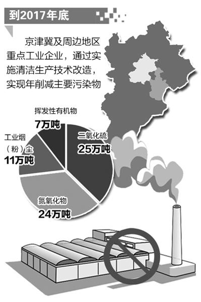 工業(yè)和信息化部日前印發(fā)《京津冀及周邊地區(qū)重點工業(yè)企業(yè)清潔生產(chǎn)水平提升計劃》,提出到2017年底,京津冀及周邊地區(qū)重點工業(yè)企業(yè),通過實施清潔生產(chǎn)技術(shù)改造,實現(xiàn)年削減主要污染物二氧化硫25萬噸、氮氧化物24萬噸、工業(yè)煙(粉)塵11萬噸、揮發(fā)性有機物7萬噸,共計67萬噸。