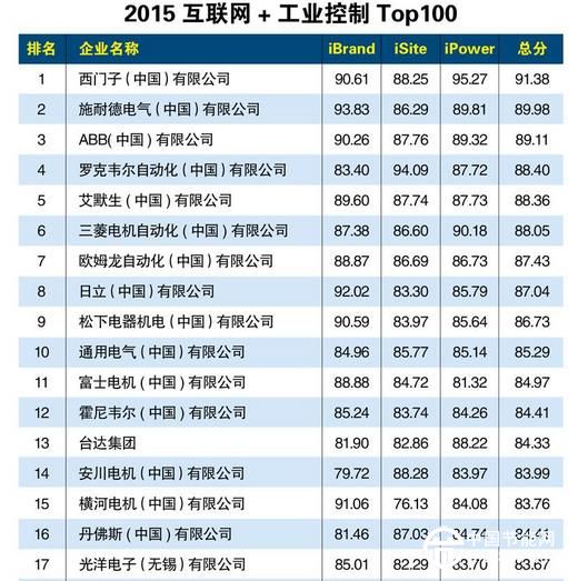 2015互聯(lián)網(wǎng)+工業(yè)控制Top100
