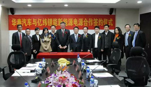 2015年11月18日,華泰汽車集團(tuán)與惠州億緯鋰能汽車動力電源合作簽約儀式在北京華泰汽車大廈舉行。