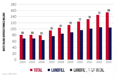 這一原理可以被認(rèn)為是符合熱力學(xué)第一定律的,只是能量被物質(zhì)資源所替代 – “一個孤立系統(tǒng)內(nèi)的物資不能被創(chuàng)造也不能被破壞,只能被轉(zhuǎn)移”。這樣的結(jié)果就是物資涌入得越多,廢棄物產(chǎn)生的幾率就越大。因此,在過去的10年內(nèi)中國的廢棄物生產(chǎn)量大幅度增長也就不足為奇了。