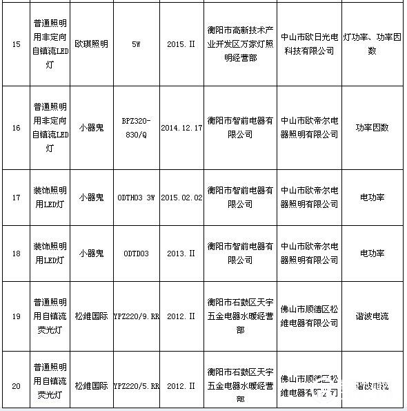 不合格商品存在的主要問(wèn)題是燈功率、電功率、諧波電流達(dá)不到標(biāo)準(zhǔn)要求。