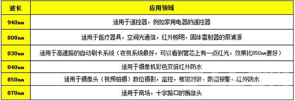 根據IR LED芯片的特性,依據不同波長可以得到更廣泛的應用