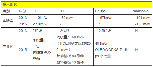 再來(lái)看看目前OLED照明技術(shù)現(xiàn)狀: