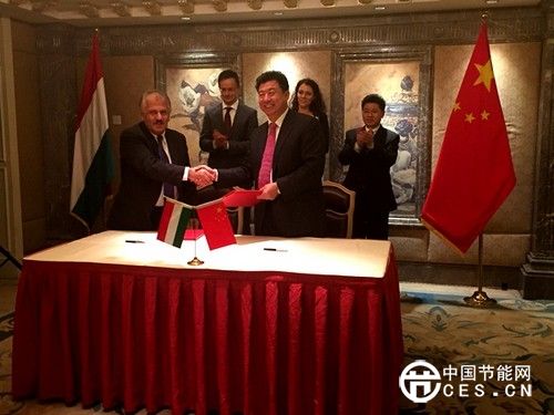 中興智能交通股份有限公司總裁劉海峰(前右)同匈牙利EPS企業(yè)代表(前左)于2015年11月27日簽署合作協(xié)議。