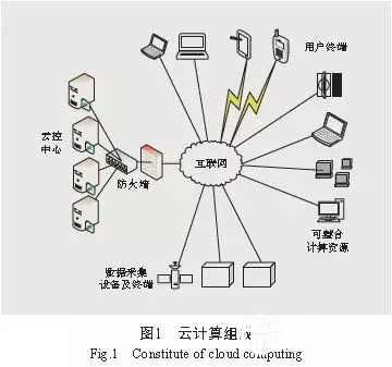 廣義上來(lái)說(shuō),云計(jì)算平臺(tái)就是云控中心與計(jì)算平臺(tái)相互獨(dú)立的同時(shí)而又互相協(xié)作的實(shí)體。云控中心依據(jù)用戶(hù)發(fā)送來(lái)的請(qǐng)求,為各個(gè)計(jì)算節(jié)點(diǎn)動(dòng)態(tài)分配用戶(hù)任務(wù),參與任務(wù)的計(jì)算節(jié)點(diǎn)將各自任務(wù)完成后的結(jié)果集中到控制中心,控制中心最后匯總結(jié)果給用戶(hù)。對(duì)于云存取請(qǐng)求,云控中心將用戶(hù)數(shù)據(jù)通過(guò)互聯(lián)網(wǎng)分布式存儲(chǔ)在云端或者從云端讀取。在虛擬化技術(shù)的支撐下,云計(jì)算及云存儲(chǔ)服務(wù)對(duì)用戶(hù)而言都是透明的。類(lèi)似于通信系統(tǒng)中的時(shí)分復(fù)用,每個(gè)用戶(hù)看起來(lái)鏈路上的設(shè)備是自己獨(dú)享的,云計(jì)算用戶(hù)眼中的云服務(wù)也是獨(dú)享的。同時(shí),云計(jì)算平臺(tái)應(yīng)為用戶(hù)提供多種終端接入方式,如智能手機(jī)、平板電腦、個(gè)人電腦等。云計(jì)算組成見(jiàn)圖1。