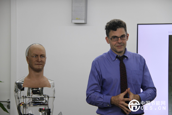 漢森機(jī)器人公司創(chuàng)始人DavidHanson在場(chǎng)嘉賓演示了他帶來(lái)的Hanson機(jī)器人,他說(shuō)“這款機(jī)器人能作出很多表情與人互動(dòng),實(shí)際上這只是后面很多的馬達(dá)來(lái)牽動(dòng)的,使機(jī)器人和真人更自然的對(duì)話。這個(gè)機(jī)器人本身會(huì)跟蹤面部,如果看它眼前有一個(gè)臉的話,會(huì)跟蹤這張臉。”
