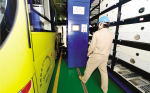 昨天,在北塘充換電站內(nèi),記者看到一輛處于測(cè)試階段的519路純電動(dòng)公交車正停駐在換電工位上等待換電。在濱海供電工作人員的操作下,位于車輛兩側(cè)的兩個(gè)單箱換電“機(jī)器人”開始同時(shí)運(yùn)做起來,它們伸出電池托盤,從公交車電池艙門內(nèi)快速摘除低電量電池,并“嫻熟”地更換為滿電電池,換下來的低電量電池則被“機(jī)器人”準(zhǔn)確地放入高度集成的集裝箱充電架進(jìn)行充電。整個(gè)過程只持續(xù)了六七分鐘,一組共計(jì)9塊電池就已經(jīng)全部更換完畢。