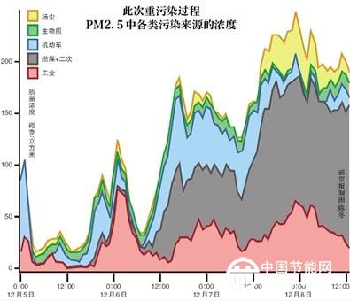 重污染天時(shí),污染物會成倍累積增加。柴發(fā)合表示,北京發(fā)生重污染天時(shí),PM2.5顆粒中的硫酸鹽和硝酸鹽通常會增加2倍左右。硫酸鹽主要來自燃煤,硝酸鹽主要來自機(jī)動車。